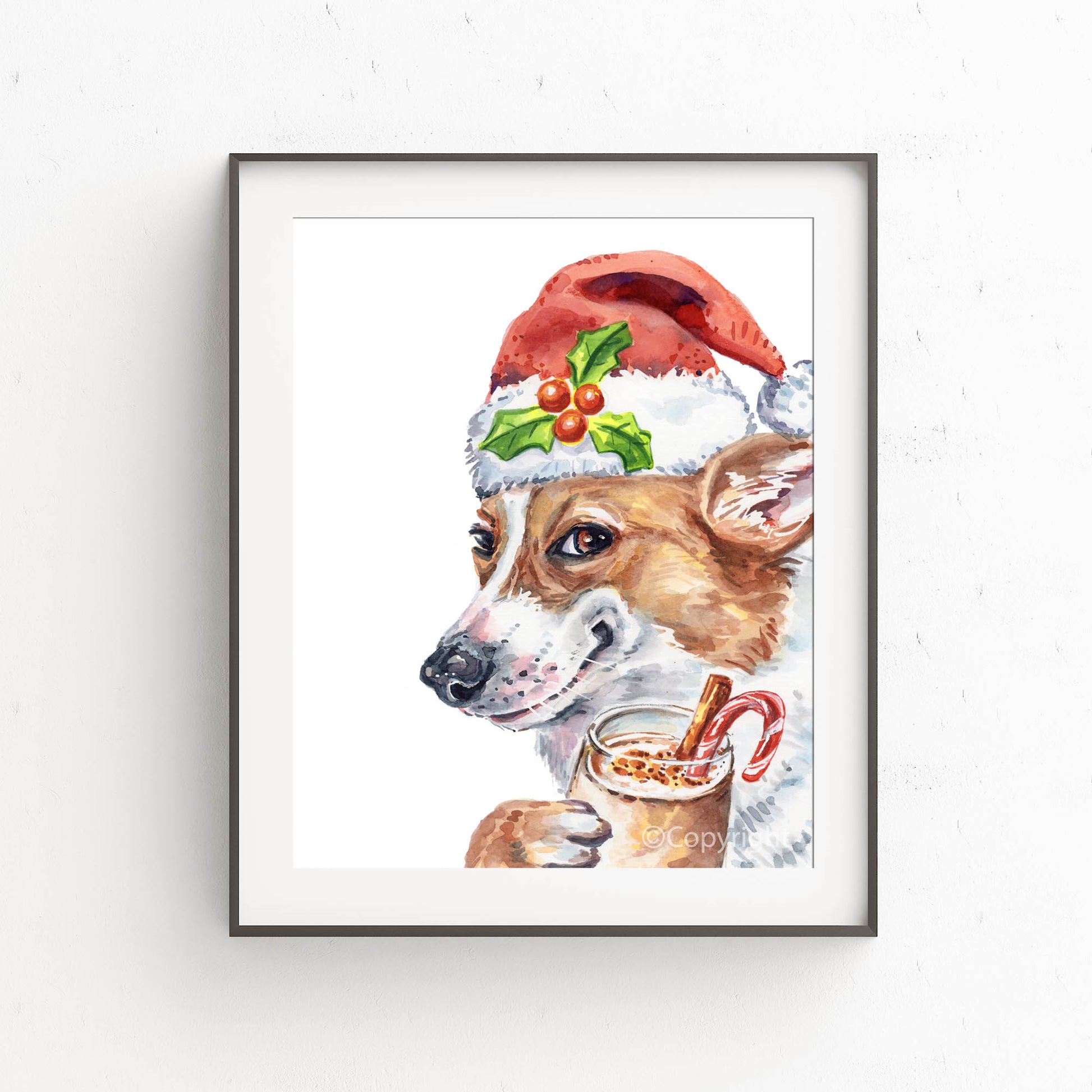 This is a PRINT of my original watercolour painting of a sassy corgi dog holding a glass of eggnog. This illustration is also available as a Christmas card.